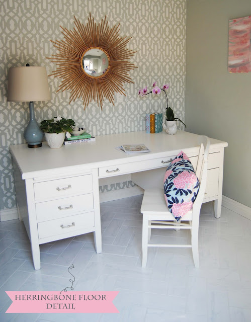 And finally, Visual Eye Candy shared how they created a herringbone tile floor in her office.  So pretty.
